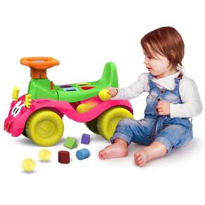 Auxilia no desenvolvimento da coordenação motora, aprendizado dos números, senso de organização e imaginação. A Totokinha Bolinha é um brinquedo que auxilia os primeiros passos do bebê de forma lúdica e divertida! Vem com formas geométricas para encaixar no banco, e um grande diferencial: A Totokinha Bolinha tem um escorregador de bolinhas nas laterais! O bebê coloca a bolinha na lateral, ela escorrega, passa por baixo do assento e sai pelo escapamento! É muito legal! Na carinha da Totokinha Bolinha (na frente do brinquedo) as mãozinhas vão para frente e para trás, com um barulhinho de crec crec?, e a língua também pode ser deslocada para os lados. Este brinquedo desenvolve a coordenação motora, o raciocínio lógico, imaginação, senso de direção, lateralidade, senso de organização e muito mais! Além disso, Conta com Formas Geométricas Para Encaixar No Assento Que Ajudam a Criança a Treinar a Coordenação Motora Brincando.