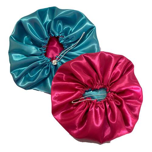 Touca de Cetim Antifrizz Dupla Face - Cor: Pink e Azul