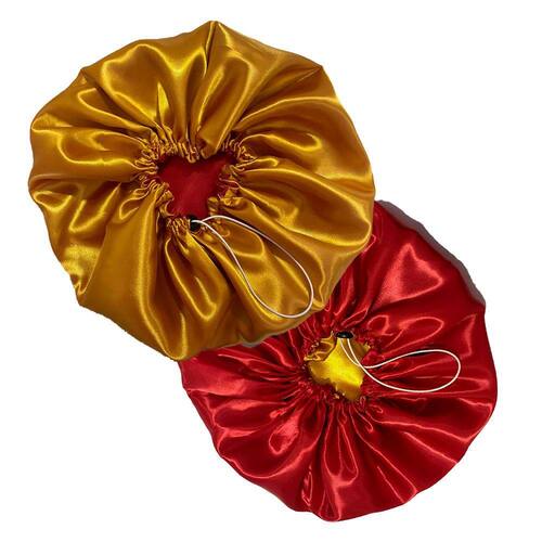 Touca de Cetim Antifrizz Dupla - Cor: Dourado e Vermelho