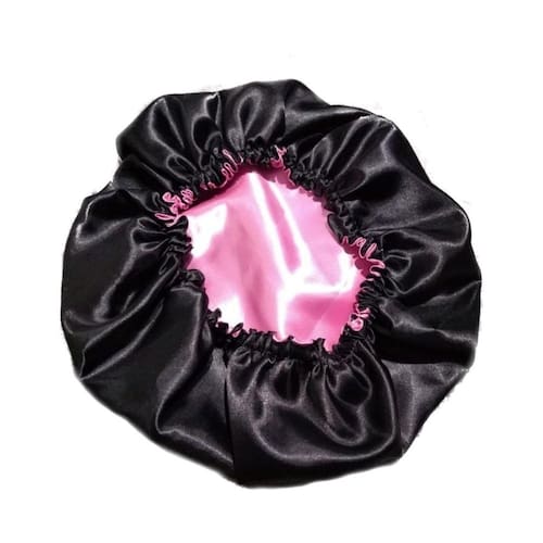 Touca De Cetim Dupla Face Preta Com Rosa Ajustável
