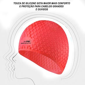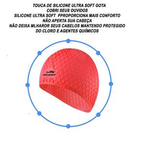 A Touca De Natação Gold Sports Gota Ultra Soft De Silicone - Com Cobertura das Orelhas - Com Cobertura das Orelhasde silicone é muito fácil de colocar, fabricada em 100% silicone ultra macio, anti tóxico, anti alérgico e com uma excelente elásticidade o que proporciona um enorme conforto na sua cabeça, seu silicone é inodoro, a touca possui bordas grossas que envolvem todo contorno da cabeça impedindo que deslize e desloque da posição ideal enquanto você realiza sua prática esportiva (natação), ideal para cabelos longos ou curtos, por se tratar de uma touca com desing ergonômico tem um projeto diferenciado cobre toda suas orelhas protegendo seus ouvidos e possui rugosidade em formato de gota gerando menos atrito com a água