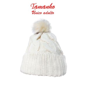 Touca Gorro Adulto Branca Pompom Tamanho Único -