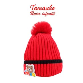 Touca Gorro Infantil Vermelha Ursinho Tamanho Único -