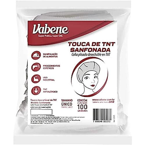 As Toucas Sanfonadas brancassão fabricadas em TNT Descartáveis, resistentes e super confortáveis, são muito utilizadas para proteção capilar, pois protege o cabelo de equipamentos que coloquem em perigo o usuário em máquinas que puxem ou enrosquem os cabelos e/ou para proteção contra os produtos que neste caso podem ser alimentos, procedimentos estéticos, hospitalares, industrial entre outros. Elas possuem uma boa aeração do couro cabeludo e possuem elástico revestido, proporcionando melhor vedação durante sua utilização.