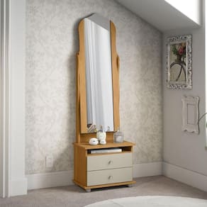 Este Toucador é equipado com um ótimo espaço de armazenamento e um espelho deslumbrante, ele é ideal para organizar seus cosméticos e acessórios enquanto você se prepara para o dia.