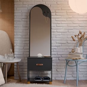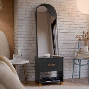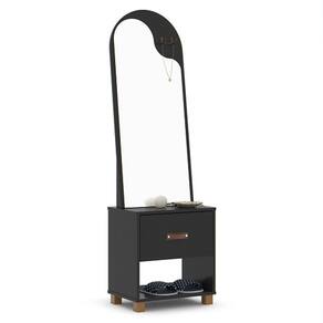 O Toucador Organic - EJ Móveis se adapta facilmente a qualquer ambiente, seja ele uma suíte, closet ou até mesmo um quarto pequeno. Suas linhas suaves e acabamento impecável, conferem um toque de sofisticação ao ambiente, deixando-o ainda mais elegante. O destaque desse móvel estilo penteadeira é o seu amplo espelho, que proporciona uma visão completa do seu rosto e cabelo, permitindo que você faça sua maquiagem ou arrume o cabelo com precisão. Já com a gaveta, você terá espaço suficiente para guardar seus produtos de beleza, como maquiagens, cremes, perfumes e acessórios. Tudo ficará organizado e ao alcance das suas mãos, facilitando a rotina de beleza do seu dia a dia.Dimensões do Produto Montado:Altura: 148cmLargura: 45cmProfundidade: 33cmObservações:– Puxador em Courino– Corrediças Telescópicas– Espelho com Design Organic– Pés em MadeiraMarca: EJ MóveisModelo: OrganicReferência: 51720WATENÇÃO: Não nos responsabilizamos pela montagem deste produto. Aconselhamos a contratação de um profissional.