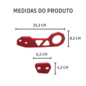 Especificação:- Tipo: TOW HOOK Vermelho - Cor: Vermelho; - produto lacrado de Ótima Qualidade; - Material: Alumínio Billet Anodizado e Aço.