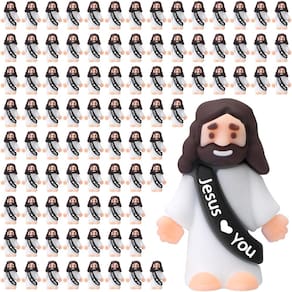 Características: Crie uma atmosfera festiva: Os brinquedos Jesus são adequados para criar uma atmosfera forte, eles não são apenas decoração de festival, mas também lindos adereços de fotos. Tire algumas fotos bonitas e deixe memórias inesquecíveis. Bons presentes: Você pode enviar as bonecas Jesus como presentes para seus familiares, colegas e muitas outras pessoas, elas ficarão felizes e surpresas quando receberem presentes de Páscoa tão requintados, mostrando seu cuidado e promovendo seus relacionamentos. Especificações: Material: borracha Cor: como mostrado na imagem. Tamanho: cerca de 1,2 x 1,4 polegadas/3 x 3,5 cm A embalagem inclui: 100 bonecas Jesus. Observações: Medição manual, considere pequenos erros no tamanho. A cor pode existir uma pequena diferença devido a diferentes telas. - Cores e estilos suficientes: você receberá 100 brinquedos de Jesus, cada tamanho tem cerca de 1,2 x 1,4 polegadas/3 x 3,5 cm, há quantidades suficientes para atender às suas necessidades de uso e substituições, você pode compartilhá-los com outras pessoas - Materiais de borracha confiáveis: a boneca Jesus é feita de materiais de borracha com uma superfície resistente e lisa, que não desbotam, deformam ou quebram facilmente, os bons materiais são confiáveis e seguros, servirão por um longo tempo - Jesus ama você: estes pequenos bonecos de Jesus são impressos com Jesus ama você, eles são uma boa escolha para dar de presente, artigos de festa, recompensas de sala de aula em eventos religiosos; o pacote pode ser compartilhado com seus entes queridos para ajudá-los a sentir o calor e a conexão nessas reuniões religiosas - Presentes de festa religiosa: os requintados brinquedos de pelúcia de Páscoa podem ser amplamente aplicados para atividades religiosas, como caça a ovos de Páscoa na igreja, atividades escolares ao ar livre e assim por diante, trazendo a você uma boa experiência de festival - Ampla aplicação: a estatueta de Jesus é fofa e interessante, usando-a em festas de Páscoa, escritórios, mesas, lareiras e prateleiras, o tamanho adequado é adequado para essas áreas sem sensação repentina, aproveitando o festival de Páscoa com outras pessoas