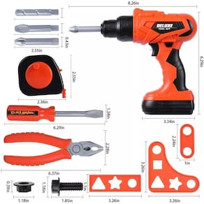 Excelente brinquedo da mais alta qualidade. Inclui 35 peças, incluindo caixa de transporte, chave de fenda alimentada por bateria com duas funções de parafusar e desparafusar, alicate, prensa, polegada de comprimento de aproximadamente 50 cm, as medidas são especificadas nas fotos, lindo presente de RPG. Chave de fenda elétrica, idêntica a uma RealWorks com 2 pilhas AA não incluídas