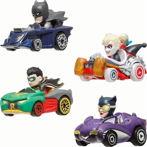 Hot Wheels RacerVerse, conjunto de 4 carros de brinquedo fundidos em escala 1:64 otimizados para dirigir em pistas de Hot Wheels com personagens da cultura pop como pilotos - Fãs de Hot Wheels e cultura pop recebem uma dose dupla de incrível incrível com este pacote de 4 Hot Wheels RacerVerse que apresenta personagens lendários do cinema, quadrinhos e TV como motoristas de carros fundidos colecionáveis! - Os veículos Hot Wheels RacerVerse foram otimizados para trabalhar dentro e fora das pistas de Hot Wheels para contar histórias épicas e aventuras de corrida. - O conjunto de 4 veículos Hot Wheels RacerVerse inclui personagens memoráveis para melhorar sua capacidade de colecionar! - Os veículos fundidos Hot Wheels RacerVerse apresentam detalhes autênticos que são fiéis ao caráter específico e inerentes à marca Hot Wheels - Este pacote de 4 carros Hot Wheels RacerVerse escala 1:64 é um presente perfeito para colecionadores e fãs de 3 anos ou mais.