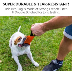 - Ótimo para cães e cachorros adultos — Este brinquedo rebocador é feito de material resistente e macio, o que o torna uma ferramenta de treinamento perfeita para cães de raças médias a grandes e cachorros grandes. Por quê? Porque o linho francês é leve, hipoalergênico, fácil de limpar e absolutamente seguro para os dentes caninos.
