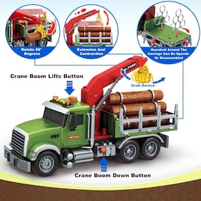 Brinquedo grande de caminhão agrícola de 38 cm - Conjunto de brinquedo de caminhão orientado por valor: este caminhão de brinquedo agrícola para meninos vem com um caminhão de brinquedo de 38 cm acionado por fricção e 6 porta-malas. Tudo o que as crianças precisam para fingir fazer madeira e carregar madeira está incluído. Além disso, este brinquedo de caminhão de 3 anos de idade está equipado com um guindaste operacional e garras independentes, que as crianças podem usar para pegar os troncos. Eles usarão totalmente sua imaginação e criatividade enquanto desenvolvem habilidades motoras finas durante o jogo. - Brinquedo multifuncional para veículos agrícolas grandes: este brinquedo de caminhão grande para crianças é projetado com uma função de bomba de ar, que pode facilmente levantar os troncos. O braço mecânico pode se estender, mover para cima e para baixo e girar para a esquerda e para a direita, proporcionando mais diversão para as crianças. Além disso, a cerca e o rack de madeira da carruagem são removíveis, para que as crianças possam carregar e transportar troncos como motoristas de caminhão da vida real. Este conjunto de caminhão de brinquedo pode ser um bom exercício para a coordenação olho-mão das crianças. - Som e luz simulados: este brinquedo exclusivo de caminhão de madeira para meninos vem com três efeitos sonoros e de luz (pilhas incluídas). Possui botões que as crianças podem usar facilmente. Meninos de 3 a 7 anos podem pressionar o botão na parte superior do caminhão para reproduzir sons e acender as luzes. Simule a cena de carregar troncos com efeitos de som e luz, este é um brinquedo de caminhão grande ideal para crianças, trará muita alegria e surpresas, e é um brinquedo de caminhão perfeito para meninos e meninas de 3, 4, 5, 6, 7, 8 anos de idade. - Brinquedo de caminhão premium de 38 cm: Este brinquedo de caminhão grande de 38 cm é feito de plástico de alta qualidade, não tóxico e sem sutiã. Este brinquedo de caminhão de toras para crianças tem bordas arredondadas para brincar com segurança. Além disso, o caminhão infantil tem funções de empurrar e puxar, as crianças podem empurrar e dirigir facilmente, o que pode exercitar bem as habilidades motoras das crianças. - Presente ideal para crianças acima de 3 anos: o conjunto de brinquedos de veículos agrícolas infantis vem com uma linda caixa de presente, que é um ótimo presente para aniversários de crianças, Dia de Ação de Graças, Dia das Crianças, Natal, Dia das Bruxas, Ação de Graças e Ano Novo, e um presente de veículo agrícola de brinquedo para meninos de 3, 4, 5, 6, 7, 8 anos. Este brinquedo de caminhão grande para crianças é um brinquedo ideal para melhorar a coordenação motora e a imaginação das crianças, estimular a criatividade e promover o crescimento das crianças.