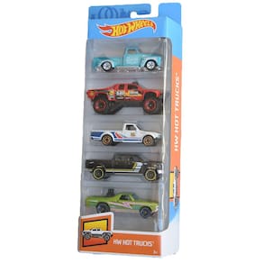 Escala 1:64 - Hot Wheels 2019 HW Hot Trucks apresentam 4x4s e caminhões prontos para trabalhar ou correr - Estilo: 2019 HW Hot Trucks - Este conjunto de rodas quentes inclui um azul petróleo HW Speed Shop 1952 Chevy, um jato de areia 541 M&M vermelho e amarelo, um Datsun 620 branco e azul, preto com detalhes amarelo e branco 2009 Ford F-150, e um verde com rosa e vermelho acentuado 1968 El Camino - Estes carrinhos Hot Wheels em escala 1:64 são compostos de metal fundido com peças de plástico que são ótimos para qualquer tipo de aventura interna ou externa - Este conjunto de carros é uma ótima adição para qualquer coleção de rodas quentes