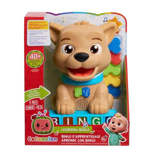 Just Play Cocomelon Count & Learn Bingo, 11 peças, mais de 40 frases didáticas, aprendizagem e educação precoces, brinquedos infantis para maiores de 18 meses — inclui: brinquedo de bingo e 10 guloseimas para cães. - Aprenda e jogue do jeito CocoMelon: inspirado na série pré-escolar de sucesso CocoMelon, o brinquedo CocoMelon Count & Learn Bingo ajuda as crianças a aprenderem letras, cores, ortografia, números e música. Aperte os botões e dê guloseimas coloridas ao Bingo para aprender e jogar! - Mais de 40 frases de aprendizagem: com o alegre cachorrinho de JJ, Bingo, este brinquedo infantil CocoMelon toca mais de 40 frases de JJ e a música “Bingo” para envolver e entreter as crianças enquanto desenvolve habilidades motoras finas. - Letras e cores: “B é para bingo!” Pressione o botão A-B-C para ouvir JJ nomear uma das letras que significam Bingo ou para nomear a cor da letra. Pressione o botão novamente para ouvir a música “Bingo”. As crianças vão adorar cantar junto enquanto as luzes piscam ao som da música. - Números e contagem: pressione o botão 1-2-3 para ouvir JJ pedir às crianças que dêem um número específico de guloseimas para o cachorro Bingo. “Alimente o Bingo com 7 ossos!” Coloque as guloseimas, uma de cada vez, em sua boca para ouvir JJ contar cada osso até dez. - Feito para mãos pequenas: este adorável brinquedo didático CocoMelon para crianças pequenas tem aproximadamente 7,5 polegadas de altura e vem com 10 ossos falsos de cores vivas que são fáceis de pegar e alimentar no bingo. - Limpeza e armazenamento: quando o Bingo tiver todas as guloseimas, abra a escotilha na parte traseira para retirá-las e jogar novamente. Guarde os ossos dentro do brinquedo para facilitar a limpeza. - São necessárias 3 pilhas AA (incluídas). - A partir de 18 meses.