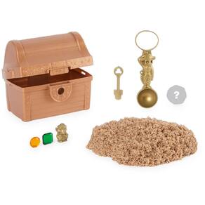- Agora você pode partir em busca de fortuna com o Buried Treasure Game of Kinetic Sand! Use a chave escondida na parte inferior do conjunto para abrir o baú do tesouro. Está cheio de areia cinética de praia! Cave com a chave, que também serve como pá, e procure seu tesouro. Você também encontrará uma camada de ouro brilhante, ônix ou areia prateada. Você não saberá o que conquistou até chegar ao fundo do poço! Encontre a ferramenta escondida que o ajudará a coletar, transportar ou cavar sua areia cinética. Continue procurando até encontrar três moedas de bronze ou prata, ou até mesmo a rara moeda de ouro!