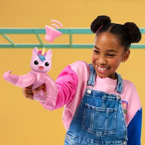 Little Live Pets Hug n' Hang Zoogooz - Uoolla Unicorn. Pet de brinquedo eletrônico interativo Squishy Stretchy com mais de 70 sons e reações. Estique, esmague e una suas mãos. Exiba-os e pendure-os por aí - mais de 70 sons e reações! Canta! Risadinhas! Pisca! Feeds e muito mais! - Conecte seu Zoogooz com as mãos deles! Eles se abraçam e andam por aí! - O corpo cheio de gosma do Uoolla Unicorn pode abraçar, esticar e apertar! - Descubra a personalidade de Uoolla Unicorn. Esmague-os para encontrar seu charme secreto escondido dentro de seu corpo pegajoso! - Faça amizade com todos os ZooGooz! Há 5 para colecionar: Sensoo Sloth, Mookie Monkey, Koomi Koala, Uoolla Unicorn e Duroo Deer!