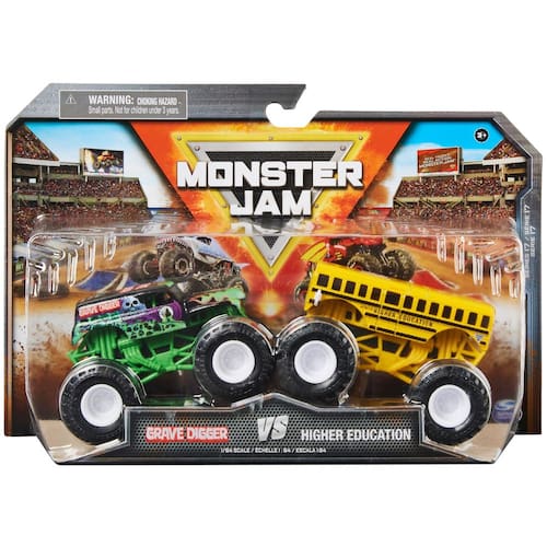 Monster Jam, Caminhões monstros fundidos oficiais Grave Digger vs. Higher Education, escala 1:64, brinquedos infantis para meninos a partir de 3 anos - 2 MONSTER JAM TRUCKS OFICIAIS: Crie seus próprios confrontos épicos de Monster Jam com o pacote de 2 peças fundido em escala 1:64. Cada pacote com 2 apresenta os caminhões mais populares e cobiçados, prontos para enfrentar - Ação direta: faça um incrível show de Monster Jam com o pacote de 2. Cada conjunto vem com 2 caminhões monstro icônicos da Monster Jam incluindo Grave Digger vs. Higher Education, Bulldozer vs. Listras de corrida e muito mais - Réplicas autênticas: cada caminhão monstro Monster Jam fundido 1:64 apresenta detalhes realistas e gráficos realistas, pneus BKT oficiais e um chassi estilizado que faz parecer que você está segurando a coisa real - Colecione todos: adicione todos os conjuntos de 2 pacotes à sua coleção (cada um vendido separadamente) e esmague seu caminho para a vitória. Estes brinquedos para crianças são os presentes perfeitos para meninos e meninas a partir de 3 anos - Brinquedos para meninos e meninas de 3 anos: os monster trucks Monster Jam para meninos e meninas são para crianças a partir de 3 anos. Os brinquedos da Monster Jam estão no topo das listas de desejos de brinquedos e jogos infantis - Inclui: 2 Monster Jam Caminhões Monstro Escala 1:64 - Coberto pelo compromisso Spin Master Care. Veja abaixo os detalhes completos