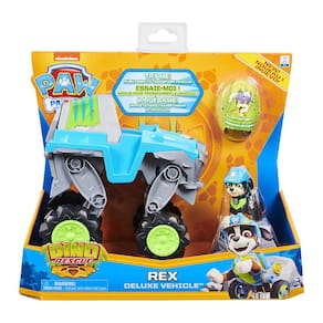 Paw Patrol, o veículo transformador de Dino Rescue Rex com figura misteriosa de dinossauro - TRANSFORMAÇÃO POP-UP: o veículo inspirado em dinossauros de Rex está pronto para resgates incríveis! Pressione para baixo para fazer o veículo subir do chão até a altura do dinossauro, para que Rex possa ajudar os dinossauros mais altos! - BONECO DE BRINQUEDO DE DINOSSAURO MISTERIOSO: Abra o pacote para revelar uma figura surpresa de dinossauro para usar em cada resgate! Colecione o resto dos veículos Dino Rescue Deluxe (cada um vendido separadamente) e salve todos os dinossauros! - BONECO COLECIONÁVEL DE REX: Equipado com sua cadeira de rodas personalizada e uniforme azul e verde do Dino Rescue, coloque Rex ao volante. O corajoso especialista em dinossauros da PAW Patrol está pronto para uma aventura pré-histórica! - O veículo de luxo PAW Patrol Dino Rescue Rex é um ótimo presente para crianças de 3 anos ou mais. Não são necessárias baterias. Salve o dia com o especialista em dinossauros da PAW Patrol, Rex e seu veículo Dino Rescue Deluxe! - BRINQUEDOS DE APRENDIZAGEM E EDUCAÇÃO: brinquedos infantis, conjuntos de brinquedos, bichos de pelúcia e carrinhos de brinquedo da PAW Patrol são brinquedos para meninos e meninas que gostam de construir brinquedos, um ótimo presente para crianças de 3 anos ou mais, como alternativa a bonecas, brinquedos de dinossauros ou um conjunto de trem.