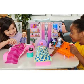 - Este conjunto Barbie inspira todos os tipos de histórias de amizade com móveis e acessórios elegantes para dormitórios inspirados na Barbie: Big City, Big Dreams!