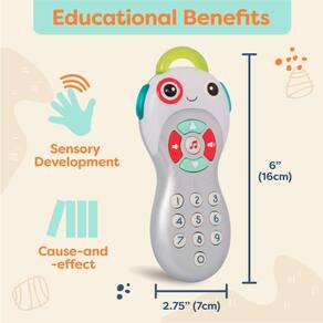- Toy TV Remote: divirta-se o dia todo com um controle remoto de TV adequado para bebês que inclui botões de volume e canal, músicas, sons e recursos educacionais!