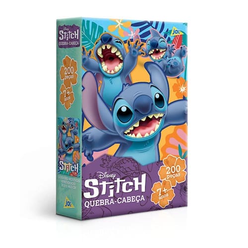 Quebra-cabeçadesafie suas habilidades com este divertido quebra-cabeça de 200 peças do Stitch EAN 7896054031793 Código 3179 Produto certificado REGISTRO:000517/2022 Imagem montada 30,9 x 44 cm Peso 275g