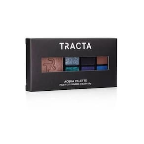 Tracta Acqua Palette 2x1 Sombra/Blush - Tracta Palette Acqua 2x1 sombra e blush possui acabamentos matte, cintilante e brilho prensado. Cores vibrantes e sofisticadas que destacam o seu olhar. Seus tons proporcionam um visual elegante, permitindo a criação de makes para dia e noite. - Alta fixação e pigmentação. Contém seis tonalidades, sendo dois tons matte, três cintilantes, um brilho prensado e um tom coringa cintilante para utilizar como blush, sombra e/ou iluminador.Atendem todos os tons de pele, permitindo diferentes combinações, com variações de tons azulados, verdes e preto.