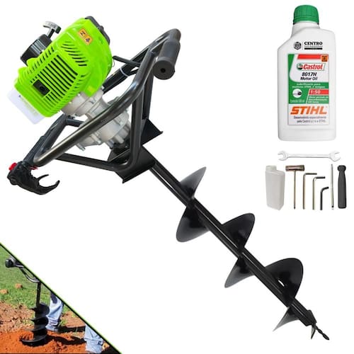 Perfurador De Solo Menegotti MPS52 Á Gasolina 2T 52CC 1,8HP Com Broca 80x20cm + ÓLEO CASTROL STIHL 500ml