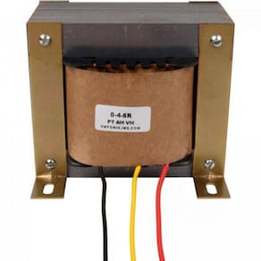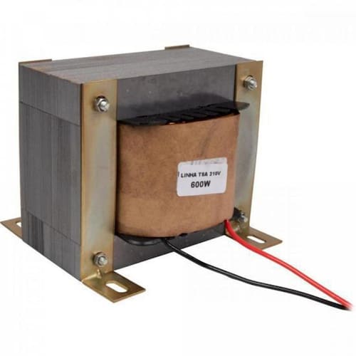 Trafo tronco com primário em 4 e 8 Ohms, secundário de 210V com potência de 600W RMS sua função e elevar a tensão de saída do amplificador e assim criar uma linha de 210V, fazendo com que os sinais possam percorrer toda a linha instalada sem perda significativa.