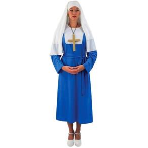 Talvez como a mascote do vinho, ou apenas para se destacar em um mar de fantasias de freira em preto e branco? O traje de freira azul é um achado divino! Combine-o com uma fantasia de padre, vendida separadamente, para uma ótima fantasia para casais.