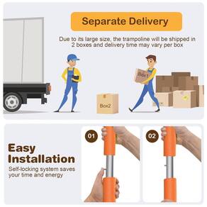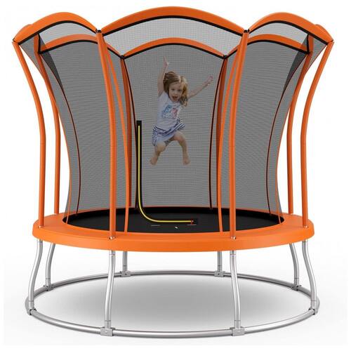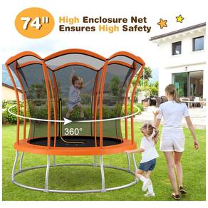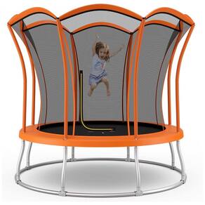 Presente certificado pela ASTM para seus filhos Apresentando um design exclusivo em forma de flor e cores brilhantes, este trampolim recreativo pode transformar seu quintal ou jardim em um parque de diversões atraente. Além do mais, este trampolim certificado pela ASTM pode não apenas trazer diversão sem fim, mas também promover o crescimento ósseo e aumentar a interação entre pais e filhos. Experiência de salto para crianças 74 redes altas e postes de rede curvados com mangas de espuma EPE macia fornecem proteção de segurança de 360 graus e evitam que as crianças sofram batidas inesperadas. Além disso, o design da rede interna e uma almofada de segurança de 3 camadas de espessura evitam riscos de esmagamento, bem como nenhum contato com postes e molas. A ampla entrada em forma de L com zíper duplo foi projetada para segurança adicional. Excelente desempenho de recuperação Equipado com um tapete de salto PP costurado de 8 fileiras de alta resiliência e resistente a rasgos e 56pcs 10 pés 40pcs 8 pés de molas galvanizadas fortes, este trampolim que passou em 300.000 testes de salto pode dar às crianças a melhor experiência de salto. Além disso, o tapete de salto passou no teste UV de 5.000 horas o que o torna adequado para uso ao ar livre. Estrutura de aço galvanizado por imersão a quente para serviços pesados A base circular aumenta a área de contato com o solo para maior estabilidade e suporte de até 425 LBS. Além disso, a estrutura deste trampolim para todas as condições climáticas é feita de tubos de aço galvanizado por imersão a quente, que oferecem maior estabilidade e resistência superior à ferrugem para uso duradouro. Fácil instalação A montagem é fácil com instruções passo a passo e ferramentas de instalação incluídas. Além disso, com instruções detalhadas e um sistema de travamento automático descomplicado, este trampolim é fácil de montar