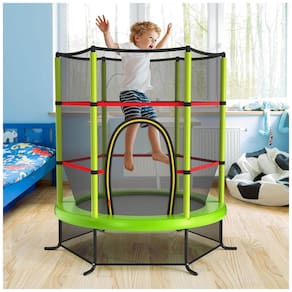 Estrutura acolchoada protetora Com rede de segurança completa, o trampolim infantil lhe dará a confiança necessária para deixar seu filho pular em paz. E o tubo de espuma pode proteger seu filho de lesões, garantindo a segurança total de seus filhos pequenos. Perfeito para exercícios infantis A rede do gabinete tem uma porta com zíper para as crianças entrarem e saírem. Com seu design transparente, você pode ficar de olho em seus filhos enquanto faz outras coisas. A rede inferior também mantém os seus filhos afastados do espaço. Enquanto isso, as pernas estendidas podem aumentar a estabilidade e evitar tombamento para garantir segurança extra. Construção estável e durável Feito de tubo de aço galvanizado no interior, o trampolim infantil é sólido e estável o suficiente para suportar até 300 libras. E a superfície galvanizada é resistente à ferrugem, aumentando a resistência, o que é de grande durabilidade com longo tempo de serviço. Fácil de montar Nosso trampolim infantil é equipado com 30 cordas de tensão, que tem boa elasticidade, permitindo que as crianças pulem mais alto. Enquanto isso, as cordas de tensão não são fáceis de deformar para uso a longo prazo e facilitam a instalação. Com um peso líquido de apenas 24 libras, o trampolim pode ser facilmente movido para onde você quiser. Construído com detalhes atenciosos O tapete de salto em PP antiderrapante e resistente ao desgaste e a almofada de segurança em PVC podem fornecer excelente desempenho de salto, o que faz com que seu filho se sinta um exercício emocionante e divertido. E também pode ajudar seu filho a desenvolver um senso de coragem e melhorar as habilidades de equilíbrio, o que é especialmente benéfico para seu filho