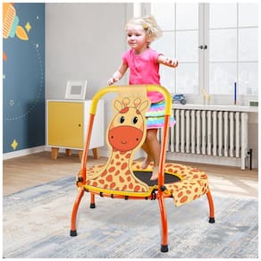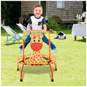 Trampolim infantil com design de girafa fofo, perfeito para bebês e crianças pequenas. Com ele, as crianças podem queimar energia e exercitar se, desenvolvendo coordenação e confiança. Além disso, é uma ótima maneira de melhorar a saúde do bebê. Possui alça de fácil aderência, pés de borracha antiderrapantes e construção robusta, tornando o seguro para bebês e crianças pequenas. Adotamos corda elástica para criar o trampolim, tornando o mais seguro e silencioso do que outros trampolins com mola. É fácil de montar e pode ser uma decoração de casa quando não está em uso. O trampolim infantil mede 27,5cm de diâmetro e 30,5cm de altura e suporta um peso máximo de 24,94 Quilos ou 25 kg.