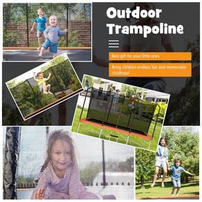A segurança sempre vem em primeiro lugar O trampolim Goplus foi testado quanto à segurança e está em conformidade com o padrão ASTM. Temos um design único que deixa espaço suficiente entre o mastro do trampolim e a rede do recinto para evitar que as crianças colidam ao cair. Além disso, não há espaço entre a rede e o tapete de salto, o que minimiza o risco de cortar os pés durante o salto. Rede de proteção completa de 6 pés de altura O trampolim é envolto por uma rede de segurança de 6 pés de altura a 360 graus, para que seus filhos possam pular como quiserem ao ar livre. A rede protetora bem tecida é feita de material de poliéster de alta qualidade, que é à prova de UV, desbotamento e rasgo. A rede protetora é firmemente fixada ao poste com parafusos em vez de tiras simples, o que a torna mais durável em tempo de vento. Estrutura estável de aço galvanizado por imersão a quente. O trampolim retangular de 8 pés x 14 pés é construído com tubos de aço galvanizado por imersão a quente que também aplicam tecnologia de galvanização de dupla face para maior resistência ao desgaste e à ferrugem. Além disso, possui 4 pernas em forma de U com pés antiderrapantes e uma escada com degraus antiderrapantes para uma estrutura mais estável e uma experiência de usuário mais segura. Experiência de salto de alta qualidade O trampolim inclui 84 molas resistentes, apertando o tapete de salto e a estrutura para um rebote rápido. O tapete de salto PP é resistente a rasgos, respirável e 5.000 horas de proteção solar, e pode ser por muito tempo ao ar livre. Este trampolim sem abertura vem com uma almofada de segurança espessa e à prova dágua para cobrir as molas. Bounce for Happiness and Fitness Nosso trampolim ao ar livre será um presente ideal para seus filhos, trazendo diversão sem fim e uma infância memorável. As crianças podem fortalecer a aptidão física, r o crescimento corporal e exercitar a capacidade de equilíbrio enquanto saltam. Além disso, o trampolim é equipado com zíper duplo e fivela de travamento, permitindo que as crianças entrem e saiam com mais rapidez e facilidade. Conectores Exclusivos Fácil Montagem A montagem é fácil com instruções passo a passo e ferramentas de instalação incluídas. Além disso, temos um design de conexão exclusivo que permite instalar o poste diretamente na base, sem ter que lutar com vários parafusos. Observe que todo o conjunto será entregue em 2 caixas e você poderá recebê las em momentos diferentes