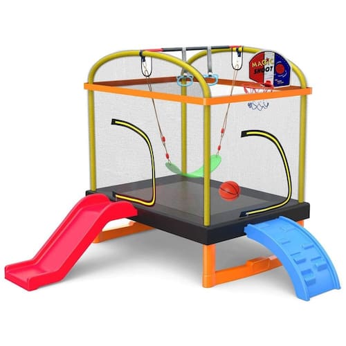 Este trampolim é perfeito para crianças de todas as idades e oferece muito mais do que apenas um trampolim. Ele inclui um escorregador, balanço e degraus para subir, permitindo que as crianças se divirtam escalando, deslizando, balançando e pulando o dia todo. Com capacidade para até 12 crianças brincarem juntas ao mesmo tempo, ele é adequado para bebês e crianças mais velhas. A estrutura robusta de aço evita que o trampolim tombe, enquanto o protetor de almofada de alta qualidade cobre as molas de segurança. A almofada de proteção da mola fica dentro da rede de segurança do trampolim, garantindo uma área de jogo maior e evitando que as mãos e os pés das crianças sejam presos por molas durante as brincadeiras. O design de fivela de deslizamento e escalada de transformação combinatória arbitrária, design de balanço com gancho, instalação e desmontagem são muito rápidos e fáceis. Ele pode ser colocado em um canto graças ao seu design retangular, aproveitando ao máximo o espaço. Este trampolim é feito com materiais anticorrosivos ultravioleta, permitindo que ele seja utilizado tanto em ambientes internos quanto externos. É o presente perfeito para crianças e pode ser facilmente montado com a ajuda do manual de instruções detalhado e dos acessórios completos. Quando a criança vir a expressão de surpresa deste grande brinquedo, você pensará que é um trampolim de excelente qualidade e preço razoável.
