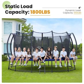 Suporte de Peso Melhorado: O trampolim Zupapa foi desenvolvido com uma estrutura de camada dupla e tubos de aço reforçados, garantindo durabilidade até sob alta pressão. Com uma capacidade estática de 816 kg e uma capacidade dinâmica de 250 kg, este trampolim foi feito para suportar mais do que nunca. Conta com uma rede de segurança de malha de alta resistência, que foi tecida para suportar impactos fortes, e molas reforçadas que mantêm excelente elasticidade sem deformação.