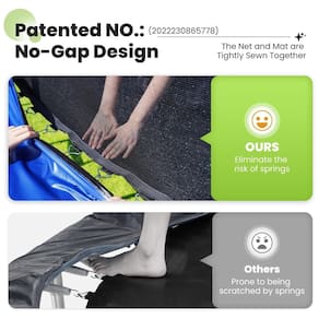 Design Sem Lacunas Patenteado: O design patenteado sem lacunas da Zupapa costura a rede de segurança com o tapete de salto, eliminando espaços perigosos e garantindo que as crianças fiquem protegidas de lesões nas molas. Isso proporciona tranquilidade, permitindo que as crianças explorem acrobacias como flips e piruetas com segurança.