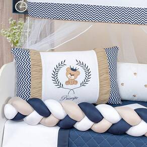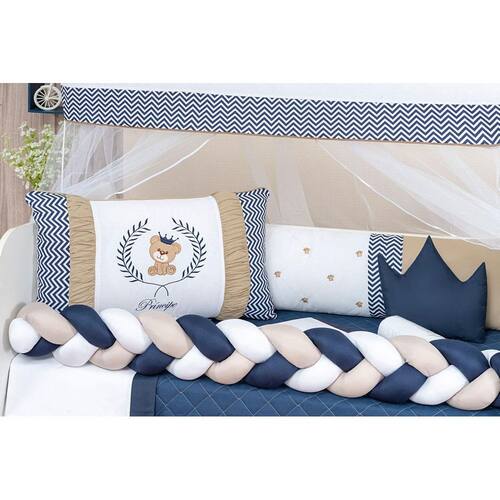 Trança protetor lateral berço avulsa menino Azul Marinho/Bege e Branco Cheia Grande Atenção: esse link só acompanha a TRANÇA. Medidas reais, super trança: 145 cm x 25 cm Composição: Tecido liso: 50% algodão| 50% poliéster Enchimento: enchimento 100% poliéster Marca: L2m Ean: 7890201038840
