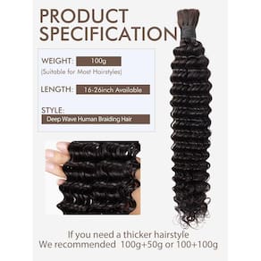 Cabelo humano trançado, 1 pacote, 2 unidades, sem trama, ondas de água profunda, cabelo humano a granel para trançar sem trama 10A extensões de cabelo humano virgem brasileiro encaracolado para tranças Boho cabelo humano molhado e ondulado - Importante: mais pessoas optam por pedir 100 g + 50 g para poder fazer um penteado mais perfeito; Como escolher um penteado e a quantidade de cabelo necessária? Dê uma olhada mais de perto na descrição do meu produto! - Comprimento e cor corretos: Cabelo humano para trançar com uma ampla variedade de cores (1B/gengibre/bordô/30#/4-27#/350#/4#/27#), comprimentos (16-71 cm), você pode escolher a combinação perfeita para suas preferências e alcançar o visual desejado - Material de cabelo de alta qualidade: LOLLY HAIR usa 100% cabelo humano virgem brasileiro 10A não processado, a textura do cabelo humano trançado é incrivelmente macia, suave e fácil de manusear, parecendo muito com cabelo natural - Longa duração: Devido à sua composição de cabelo real de alta qualidade, o cabelo humano trançado molhado e ondulado é excepcionalmente durável, mantendo seu apelo estético por longos períodos. Isso garante que você possa usar esses penteados com confiança - Mais amplamente utilizado: o cabelo humano encaracolado trançado oferece grande versatilidade, não apenas adequado para tranças boêmias, tranças sem nós, tranças boho e tranças de caixa, mas também permitindo um estilo fácil para diferentes visuais modernos