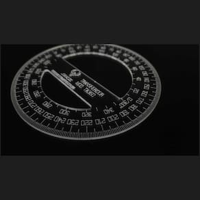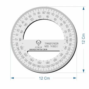 Características: - medidas em graus º - fabricado em acrilico 3mm - cor cristal transparente. - alta resistencia. - possui gravação das escalas em baixo relevo. - tamanho escala: -medidas: 12 x 12 cm