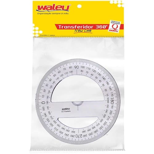 Transferidor Poliestireno 360 Graus Cristal O Transferidor 360º New Lina Waleu, é resistente, feito em poliestireno. Seu uso é diversificado podendo ser nas mais diversas áreas, como educação, matemática, engenharia, e muitas outras atividades que requeiram o uso e a medição de ângulos com precisão. Medidas aproximadas do produto - Comprimento: 16 cm - Altura: 3 cm - Largura: 13 cm - Peso: 220 g Marca: Não Informado