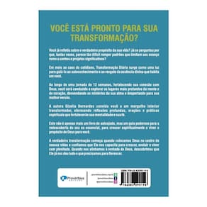 VOCÊ ESTÁ PRONTO PARA SUA TRANSFORMAÇÃO? Você já refletiu sobre o verdadeiro propósito da sua vida? Já se perguntou por que, tantas vezes, parece tão difícil romper padrões que limitam seu avanço rumo a sonhos e projetos significativos? Em meio ao caos do cotidiano, Transformação Diária surge como uma luz para guiá-lo ao autoconhecimento e ao resgate da essência divina que habita em você. Ao longo de uma jornada de 12 semanas, fortalecendo sua conexão com Deus, você será conduzido a explorar os lugares mais profundos da mente e do coração, desvendando os mistérios da sua alma e despertando para sua melhor versão. A autora Gizelia Bernardes convida você a um mergulho interior transformador, oferecendo reflexões profundas, orações e práticas espirituais que fortalecerão sua mentalidade e sua fé. Este não é apenas mais um livro de autoajuda, mas um guia poderoso para a redescoberta do seu eu essencial, para crescer espiritualmente e viver o propósito de Deus para você. A verdadeira transformação começa quando colocamos Deus no centro de nossas vidas e confiamos que Ele nos capacita para crescer, evoluir e viver com plenitude. Quando nos alinhamos à vontade de Deus, descobrimos que Ele já nos deu tudo o que precisamos para florescer. Marca: Não Informado
