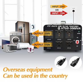 - Conversor de transformador de tensão step-up/down de 5000 watts. Aumenta a tensão de 110-120 volts para 220-240 volts. Tensão redutora de 220-240 volts para 110-120 volts.