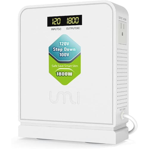 - Conversor de tensão abaixador: sua fonte de alimentação autêntico é de 120 V ou 110 V, como o sistema de energia nos EUA, Canadá, México, conversores UMI converterão a tensão operacional de 110-120 V para 100 V para seus aparelhos elétricos japoneses.