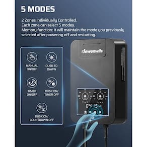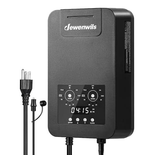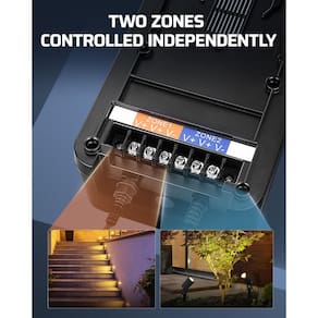 Transformador de paisagem de baixa tensão DEWENWILS com 2 zonas O transformador de paisagem de baixa tensão DEWENWILS é projetado para iluminação externa eficiente. Ele converte 120 V CA para 12 V CC, fornecendo energia confiável para suas necessidades de iluminação paisagística de iluminação paisagística de 12 V dc. Com duas zonas com uma saída máxima de 300 W cada, este transformador é perfeito para holofotes e luzes de passo. Este transformador é ideal para iluminação paisagística, oferecendo desempenho confiável para luzes de jardim, luzes de caminho, luzes de deck e muito mais. Atualize seu espaço ao ar livre com o transformador de paisagem de baixa tensão DEWENWILS hoje! Especificações: - Modelo: DLT200-12-D-P - Tensão de entrada: 120VAC, 60Hz - Saída: 12VDC - Classificação de potência máxima: 300W Conteúdo da embalagem: - 1 transformador. 1 x manual de instruções (idioma português não garantido). - [2 zonas independentes] Com 2 zonas independentes (cada zona: 300 W máx.; total: 300 W), você pode selecionar modos diferentes para cada zona e controlá-los separadamente, permite iluminação personalizada em 2 áreas distintas; a operação do botão é simples e conveniente, facilitando a personalização de sua configuração de iluminação paisagística - [5 modos] O transformador de paisagem de baixa tensão oferece 5 modos: liga/desliga manualmente, crepúsculo ao amanhecer, crepúsculo na contagem regressiva (após 2/3/4/6/8 horas), crepúsculo ligado, temporizador desligado; tela de LED clara e operação de botão fácil; função de memória retém as configurações após uma falta de energia - [12 V CC e proteção contra sobrecarga] O transformador de baixa tensão DEWENWILS 300W tem um disjuntor embutido para proteção contra sobrecarga e curto-circuito quando conectado a luminárias de 12 V CC; converte 120 V CA para 12 V CC e é adequado para várias luzes LED de 12 V, incluindo luzes de paisagem, ponto, degrau, jardim, caminho, deck e luzes no solo - Fácil de instalar: equipado com orifícios de suspensão embutidos, basta conectar os terminais positivo e negativo e usar 2 parafusos para pendurar o transformador de paisagem; recomenda-se pendurá-lo a uma altura de 30 a 122 cm (0,3 m a 1,2 m); o cabo de alimentação SJTW18AWG3/C de 1 m atende aos requisitos de uso diário - Durável para uso ao ar livre] Feito de material durável de policarbonato (policarbonato), os transformadores de baixa tensão de zonas duplas para ambientes externos são projetados para suportar chuva, neve, poeira e abrasão; garante desempenho e durabilidade duradouros, tornando-os perfeitos para uso ao ar livre
