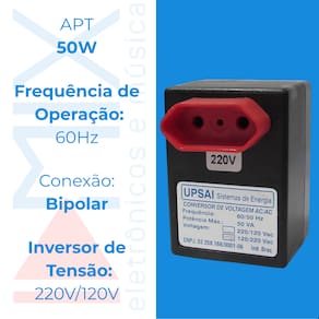 Compacto e eficiente, converte tensões entre 120V e 220V com potência de até 50VA. Ideal para pequenos aparelhos eletrônicos de baixa potência, oferece segurança e praticidade no uso diário.