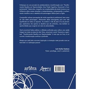 Em Transformando desafios em oportunidades Uma Tríade Cognitiva, Emocional e Comportamental, exploro atentamente as complexidades da mente humana e sua influência sobre nossas emoções e comportamentos. Com uma abordagem fundamentada na ciência e enriquecida pelo grande exemplo bíblico do personagem José no Egito, convido os leitores a embarcar em uma jornada de autodescoberta e transformação. Como um viajante dedicado a explorar os caminhos que conectam espírito, mente e corpo, embarquei na jornada pela tríade cognitiva, emocional e comportamental, que constitui a essência da verdadeira saúde integral. Neste livro, compartilho não apenas meu conhecimento profissional, mas também minha jornada pessoal em busca de um bem-estar completo e duradouro. Permeado de insights práticos e reflexões profundas, desenvolvidas para apoiar os leitores a cultivarem uma saúde integral em suas vidas, este livro oferece ideias abrangentes para uma vida plena e equilibrada entre saúde física, emocional, social, financeira e espiritual. Ao integrar com perspicácia conceitos cognitivos, emocionais e comportamentais, este livro oferece uma abordagem integrativa e empoderadora. Reconheço a importância de nutrir não apenas o corpo, mas também a mente, as relações, as finanças e o espírito, e compartilho ferramentas práticas para alcançar esse equilíbrio essencial. Transformando desafios em oportunidades Uma Tríade Cognitiva, Emocional e Comportamental é mais do que um simples livro; é um convite para uma transformação profunda e duradoura. Desejo que cada leitor encontre inspiração e orientação nesta jornada em direção ao bem-estar completo e à realização pessoal. Luiz Carlos Caetano Pastor, psicólogo, coach e palestrante