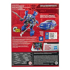 A Studio Series sempre permitiu que os fãs passassem pela tela grande e construíssem a última coleção transformers inspirada em cenas icônicas de filmes do universo cinematográfico Transformers. Agora, a linha Studio Series está se expandindo para incluir os momentos épicos e personagens do clássico 1986 The Transformers: The Movie, trazendo aos fãs uma nova série de figuras inspiradas na tela para coletar! (Cada um vendido separadamente. Sujeito à disponibilidade.) Este Studio Series 75 Deluxe Class Transformers: Revenge of the Fallen-inspired Jolt figura converte-se de robô para modo Chevrolet Volt licenciado em 23 passos. Remova o pano de fundo para mostrar Jolt na cena da Batalha do Deserto da Pirâmide. Na cena pyramid Desert Battle de Transformers: Revenge of the Fallen, Jolt usa seus chicotes eletro para ligar Optimus Prime com peças de jato do Jetfire, e o líder da Autobot sobe aos céus como Jetpower Optimus Prime! Transformers e todos os personagens relacionados são marcas comerciais da Hasbro. CHEVROLET, o logotipo BOWTIE, CORVETTE e o logotipo corvette, e CAMARO, são marcas registradas da General Motors, LLC.