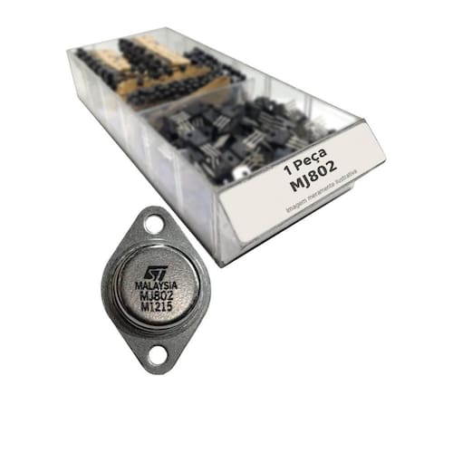 - Modelo: MJ 802 - Tipo: transistor de potência NPN - Encapsulamento: TO-3 metálico - Tensão de entrada base-emissor: 5V - Tensão de saída coletor-emissor: até 140V - Corrente máxima de coletor: 15A - Potência máxima de dissipação: 150W - Ganho de corrente hFE : de 20 a 70 - Frequência de transição: 2 MHz - Polaridade: NPN - Aplicações: amplificadores de áudio, fontes de alimentação, inversores, sistemas industriais e motores - Temperatura de operação: de menos 65 graus a 200 graus Celsius Marca: Não Informado Ean: 7908891103844