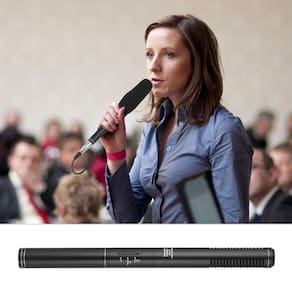 Características destacadas 1. Microfone condensador estéreo de transmissão de qualidade profissional. 2. Caracterizado por ser uni-ultradirecional, de alta sensibilidade e com boa resposta de frequência para melhorar a qualidade de gravação. 3. Isolamento rígido e supereficaz de choque e vibração. Filtro passa-alta. Um escudo anti-vento (você pode escolher o que quiser em diferentes ocasiões): Um protetor de espuma para eliminar o ruído, pode efetivamente reduzir o ruído do ambiente circundante a ser captado. 4. Ligue. Duas configurações de alcance: “normal” para cerca de média distância; “Tele” para longa distância. Alimentado por 1 bateria “AA” (não incluída) 5. Conexão direta de 3,5 mm para câmeras, gravadores e outros dispositivos. Veja menos