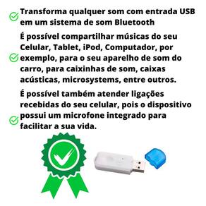 Transmissor Bluetooth Usb Adaptador Musica Carro Adaptador Bluetooth: - Desenvolvido para dispositivos sem conexão Bluetooth - Plug and Play, só conectar e usar - Compatível com qualquer dispositivo com Usb - Com Led indicativo de funcionamento Informações adicionais: - Conexão Usb 2.0 - Distância: Até 10 metros - Alimentação diretamente do Usb - O dispositivo apenas recebe conexões - Cor: Branco - Medidas do produto: 5 cm x 1.8 cm x 0.8 cm - Peso do produto: 11 gramas Conteúdo da embalagem: 1 - Adaptador Bluetooth Homologação Anatel: 080281811799 Marca: Não Informado